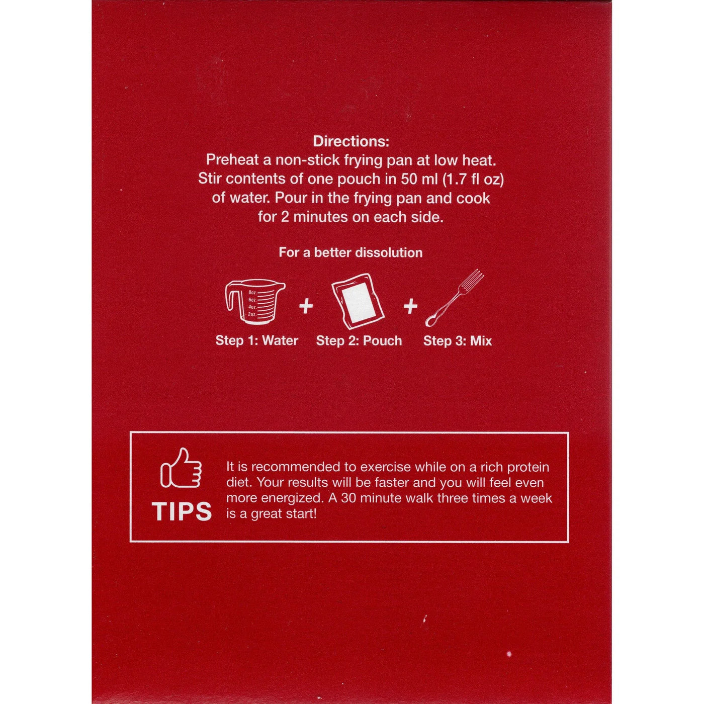 Preheat a non-stick frying pan at low heat. Stir contents of one pouch in 50 ml (1.7 fl oz) of water. Pour in the frying pan and cook for 2 minutes on each side.