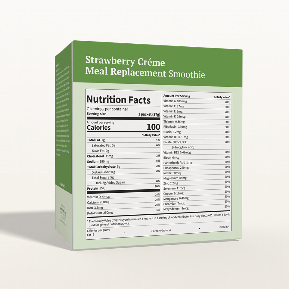 Strawberry Creme Smoothie is here to help you reach your weight loss goals. Fortified with over 20 vitamins & minerals, our Strawberry Creme Smoothie is a perfect meal replacement to be consumed before or after a workout.