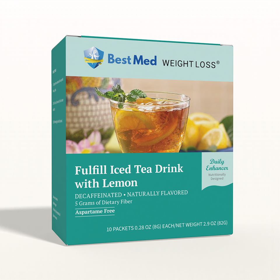 BestMed's Fulfill Iced Tea Drink with Lemon is back & fortified with 5g of fiber to aid in digestion during your weight loss journey. A healthy amount of fiber is a crucial component of your diet when trying to achieve healthy weight loss. With only 15 calories it is the perfect addition to your lunch or dinner portions.