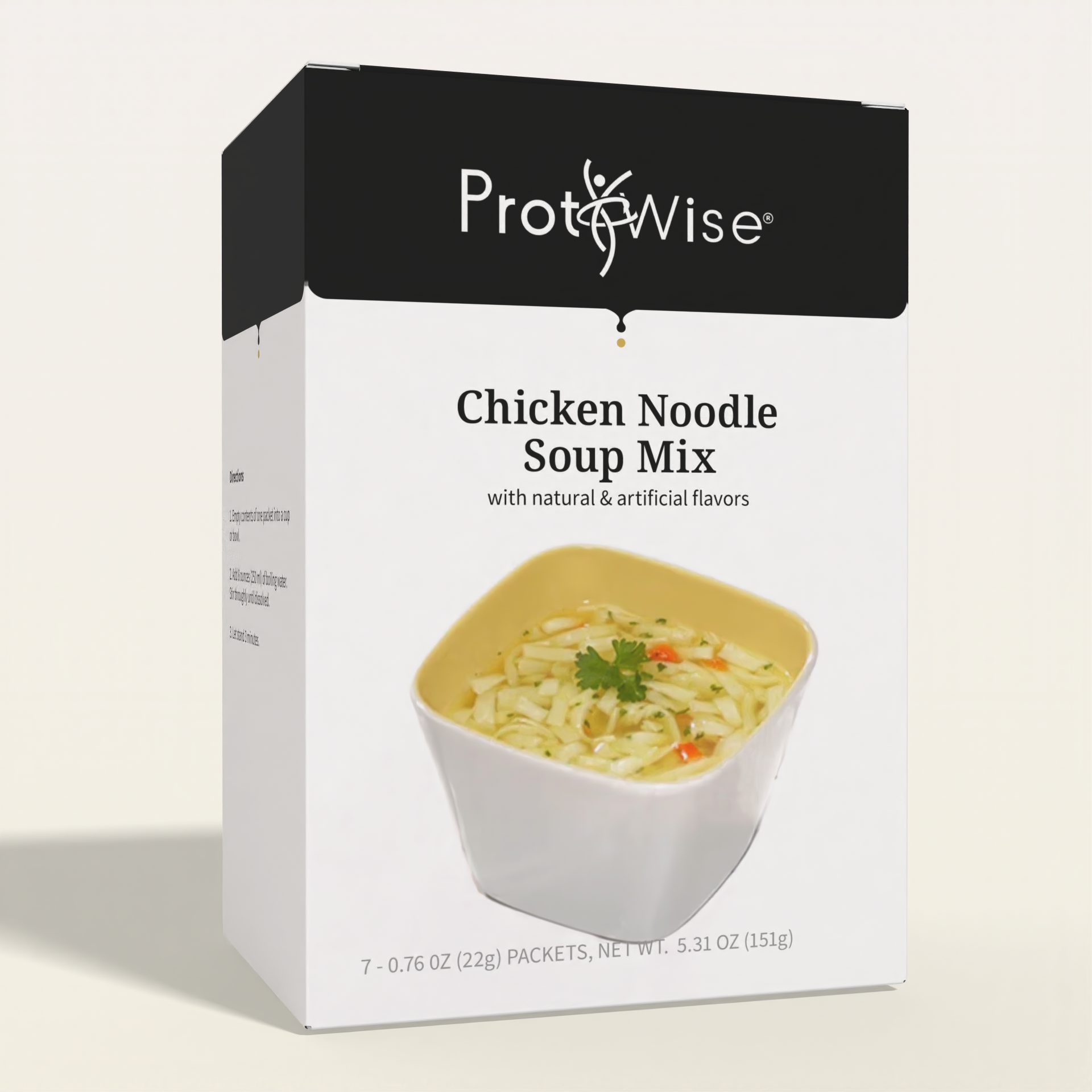 The warm, comforting, and familiar flavors of chicken noodle soup now come in a high protein alternative with our ProtiWise Chicken Noodle Soup. The 15g blend of fast and slow digesting proteins deliver long-lasting hunger satisfaction to help beat cravings throughout the day. Each serving is under 100 calories and has 0g of fat, making it a great meal choice for any diet. Bring a serving to work with you for a quick, yummy lunch that'll keep you feeling satisfied until the work day is over!
