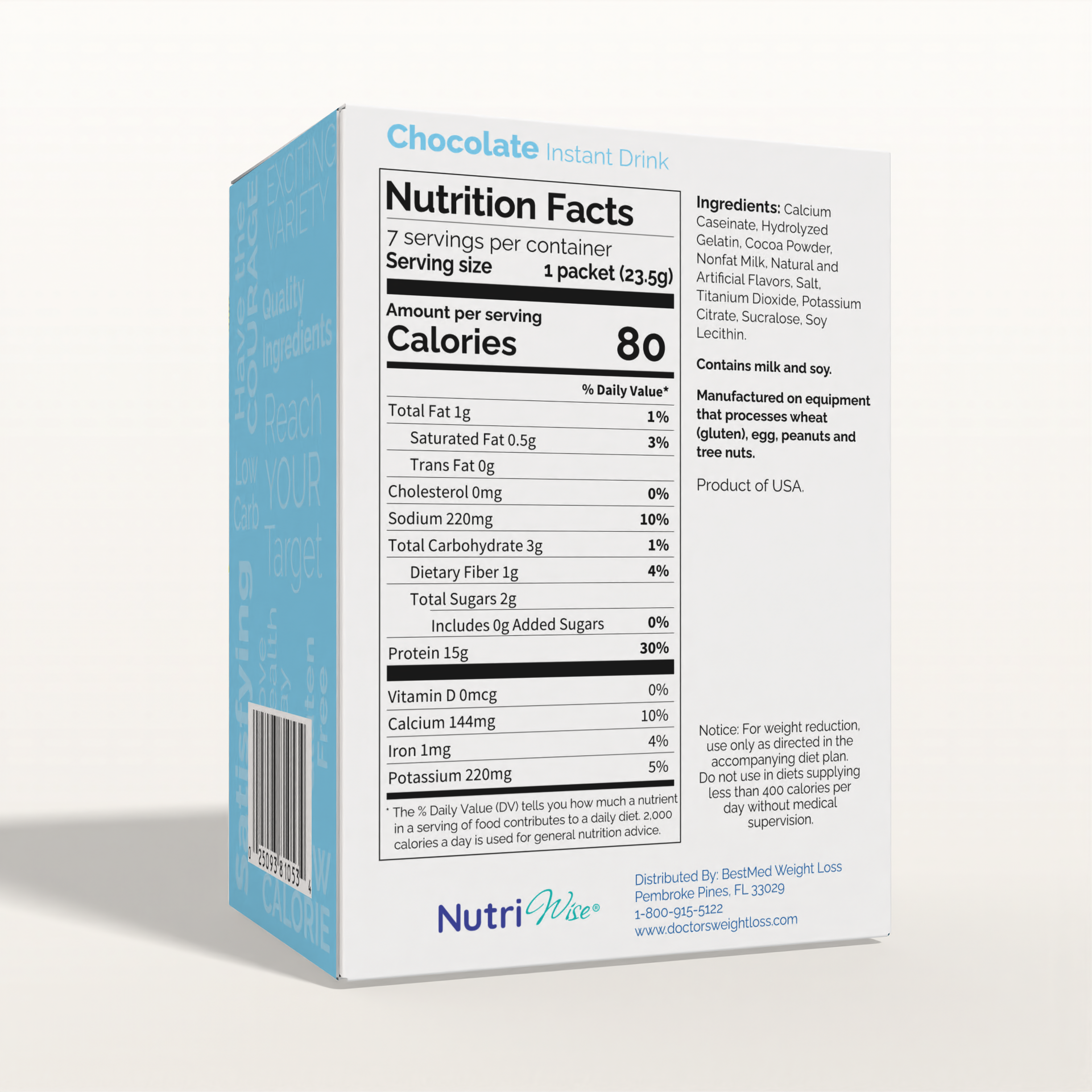 Don't let your chocolate cravings ruin your weight loss journey. Try our NutriWise Chocolate Instant Drink Mix to satisfy your sweet tooth. Unlike dense shakes, our drink mix gives you that chocolate milk flavor without the extra calories.