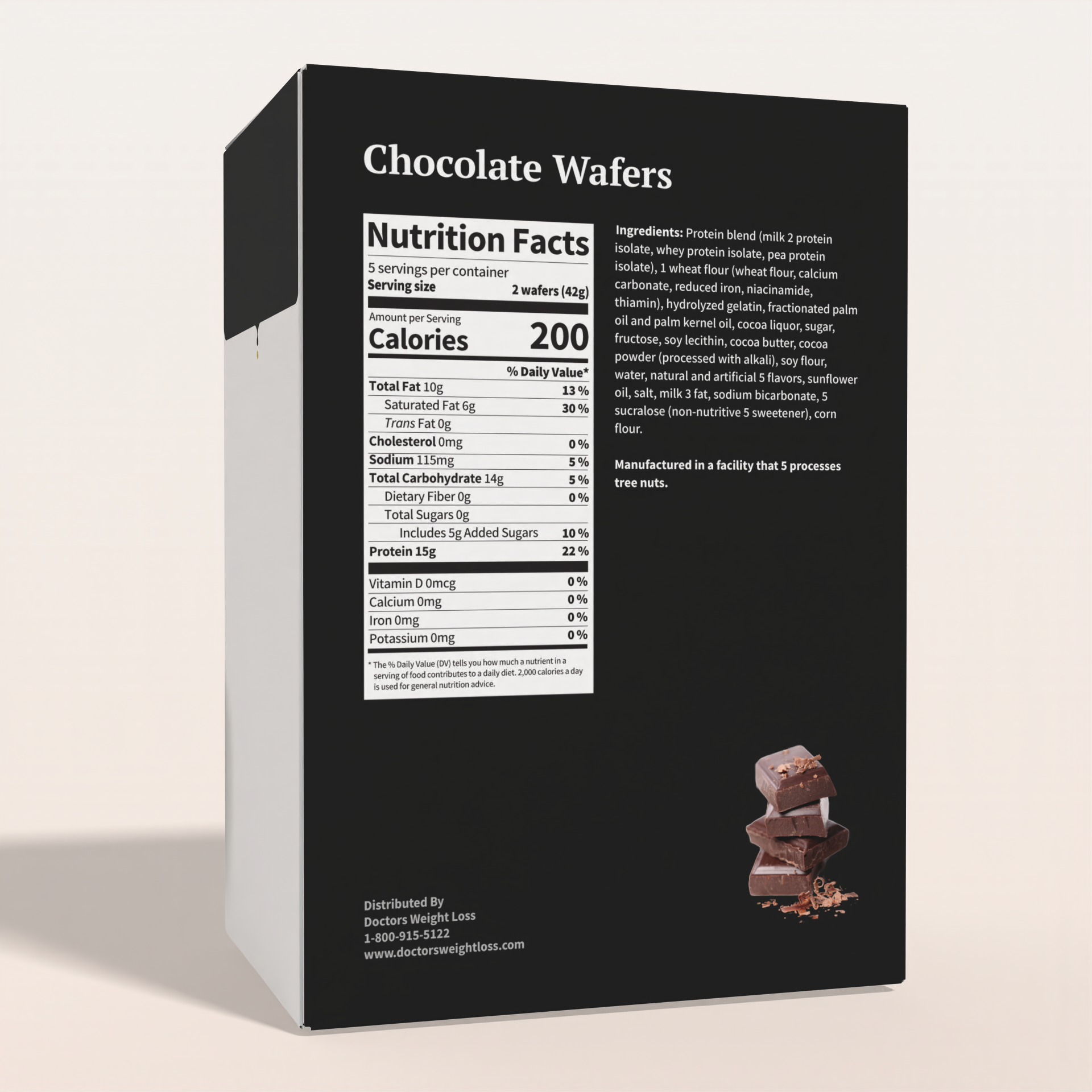 A customer favorite, the ProtiWise Chocolate Protein Wafers are packed with 15 grams of protein to help keep you full! Enjoy these delicious chocolate wafers with a cup of our creamy cappuccino or hot chocolate and you've got yourself a satisfying, diet-friendly treat perfect for any time of day!