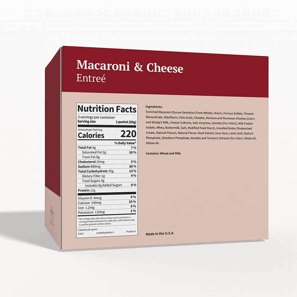 Ingredients: Enriched Macaroni (Durum Semolina [From Wheat], Niacin, Ferrous Sulfate, Thiamin Mononitrate, Riboflavin, Folic Acid), Cheddar, Romano and Parmesan Cheeses (Cow’s and Sheep’s Milk, Cheese Cultures, Salt, Enzymes, Annatto [For Color]), Whey, Calcium Caseinate, Milk Protein Isolate, Salt, Buttermilk, Modified Food Starch, Natural Flavor, Yeast Extract, Guar Gum, Sodium Phosphate, Lactic Acid, Disodium Phosphate, Annatto (For Color), Yellow #5, Yellow #6. Contains: Wheat & Milk.