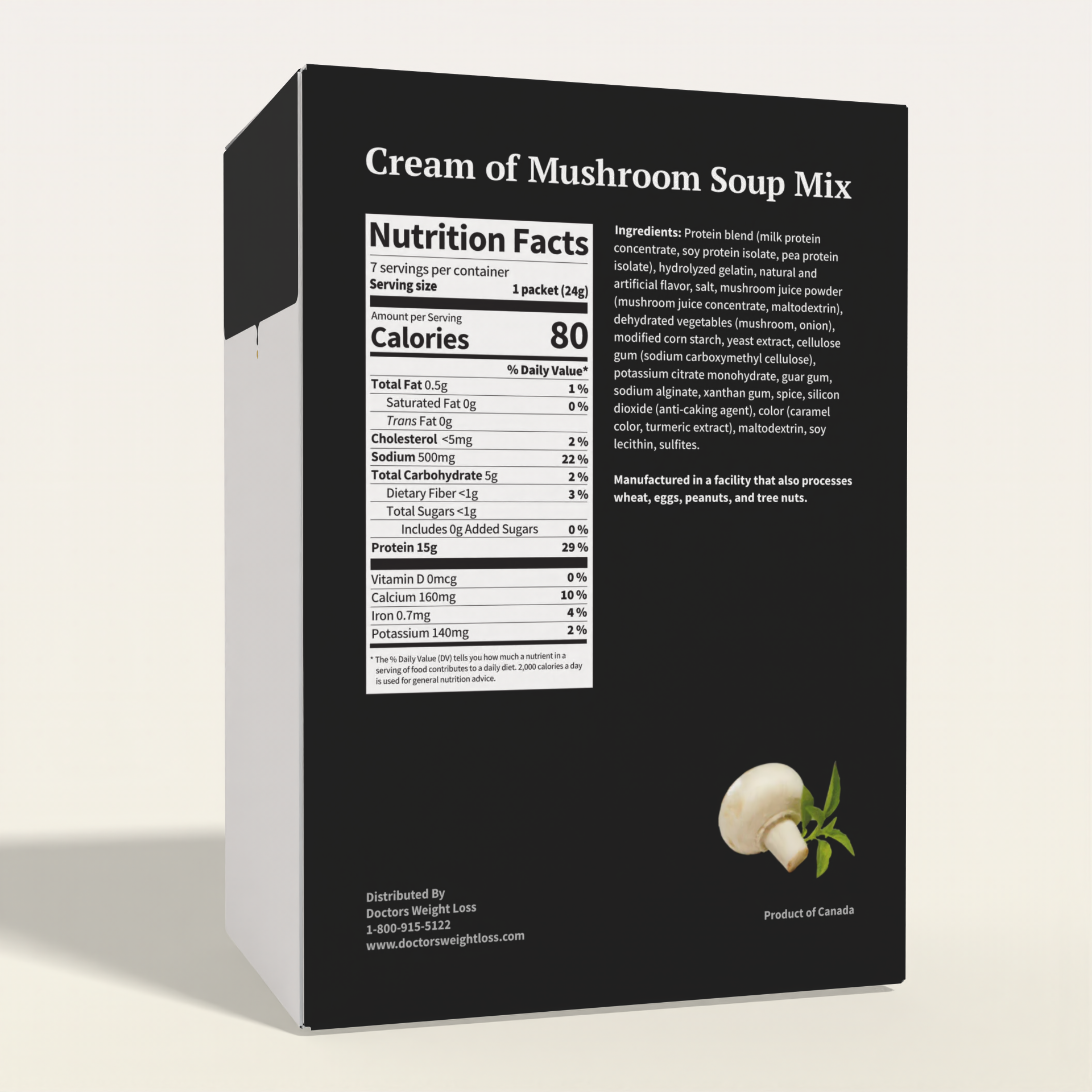 The warm and comforting feeling you get from enjoying a bowl of creamy mushroom soup has now been made possible as a low calorie/high protein option with the ProtiWise Cream of Mushroom Soup. With just 80 calories and 15 grams of quality protein, this diet-friendly soup is perfect for any time of day. This product can also be used as a high protein sauce to "dress up" a healthy meal. The flavors will have you in disbelief that it'll actually keep you on track with your weight loss goals!