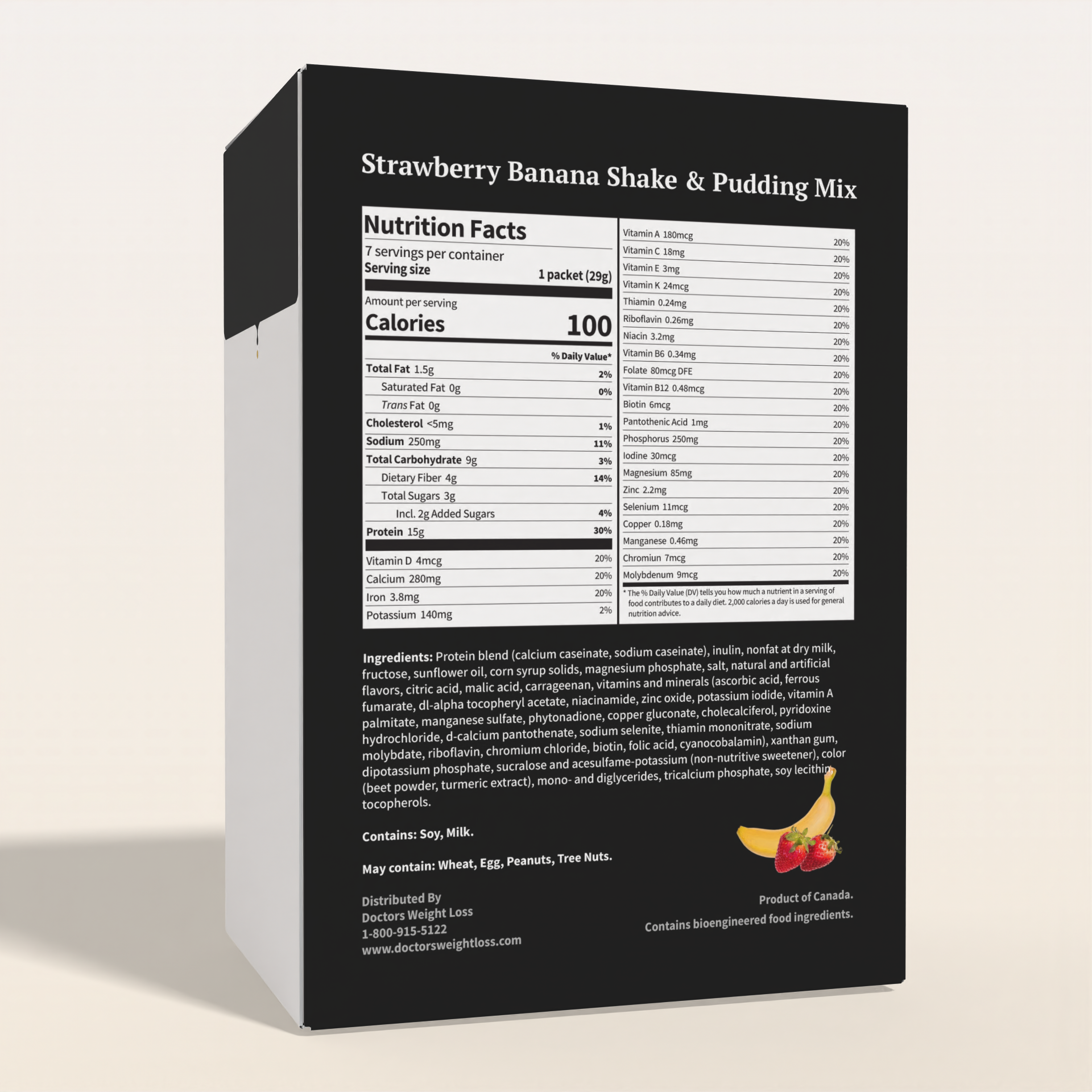A better combination just doesn't exist. Strawberry & Banana were meant to be together in our delicious shake/pudding mix. Complete with a full spectrum of essential vitamins and minerals, this pudding/shake mix serves as a great meal replacement option. With only 100 calories and 15g of quality protein per serving, you can achieve your weight loss goals while savoring this delicious combination of flavors.