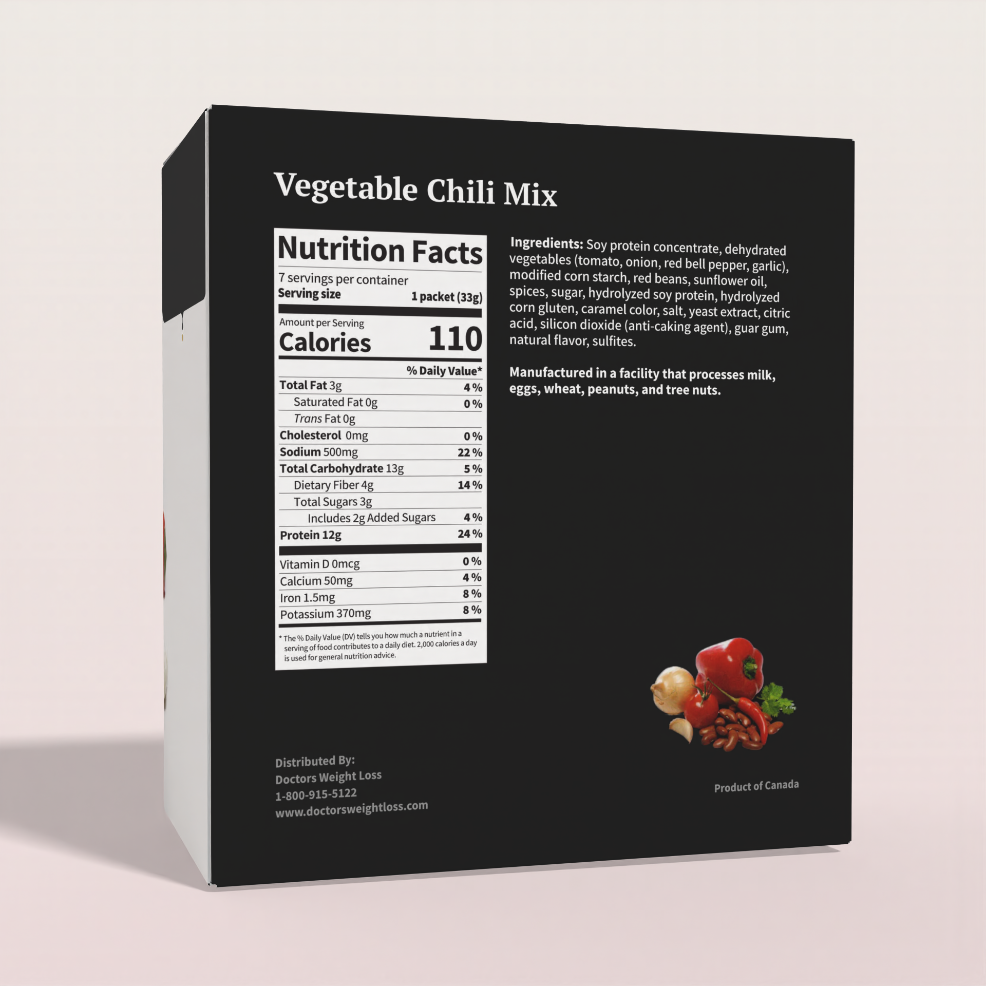 The ProtiWise Vegetable Chili is a high-fiber, textured soy protein product that is sure to satisfy solid food urges while providing a hearty, low-fat meal. Enjoy this low calorie, high protein, diet-friendly dinner without the guilt!